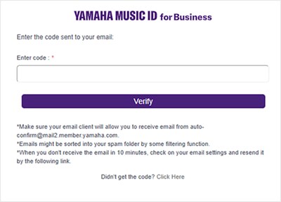 - Wenn Sie bereits eine Yamaha Music ID for Business haben: Geben Sie Ihre Anmeldedaten ein, um sich anzumelden, und fahren Sie direkt mit Schritt 5 fort.